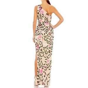 Mac Duggal Floral Sequin One Shoulder Side Slit Gown Multicolor Size 8 NWT