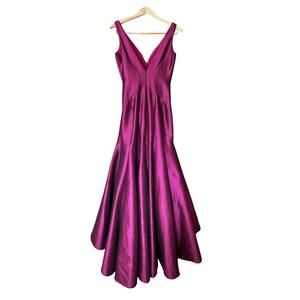 Mac Duggal Formal Dress Size 4 Magenta Taffeta Plunge Neck Trumpet Skirt HOCO