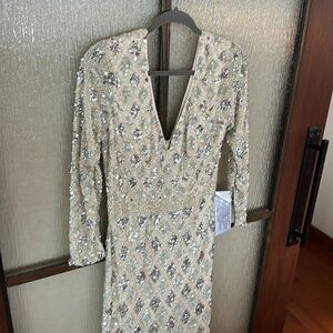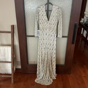 Mac Duggal Geometric Evening Gown in Nude Size 10.