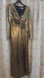 Elegant gold asymmetrical dress. Features long sleeves and a high slit. Perfect for formal occasions.