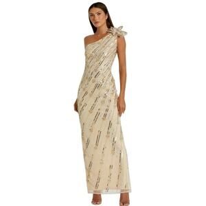 Mac Duggal Gold Embellished Floral Detail One Shoulder Gown NWT Size 8