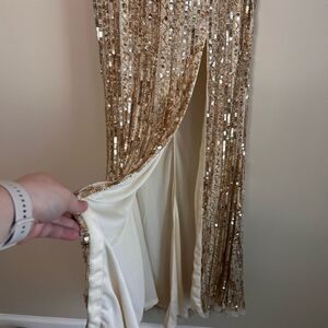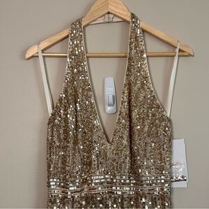 Mac Duggal Gold Nude Beaded Sequin Halter Evening Gown Style 5759 Size 10