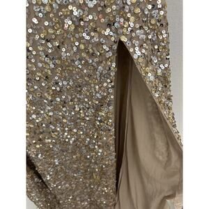 Mac Duggal Gold Sequin Embellished Spaghetti Straps Evening Gown Size 2