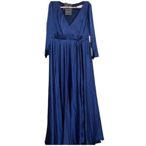 Mac Duggal Gown Dress Size 18W Blue Satin V Neck Long Sleeve 55290 NWT