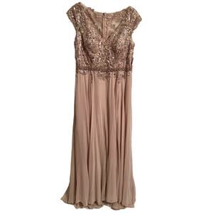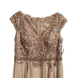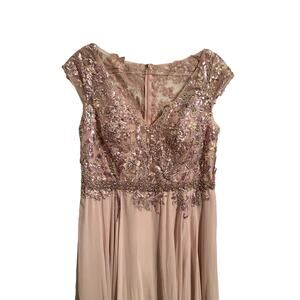 Mac Duggal Embellished Cap Sleeve Bodice Flowy Gown Rose Pink Gown Size 14 New with tags Retail $698