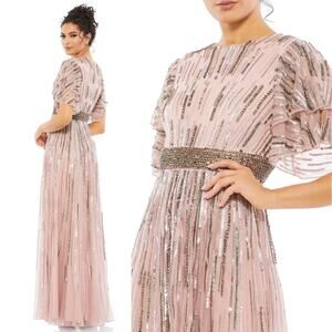 Mac Duggal Gown Embellished Full Length Layered Sleeve Size 10 Vintage Rose 93582 NEW $698