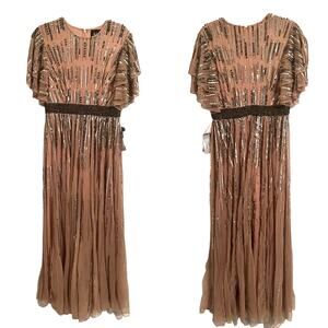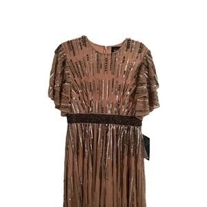 Mac Duggal Gown Embellished Full Length Layered Vintage Rose Size 10 93582 NEW