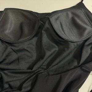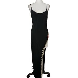 Absolutely stunning in person! High slit, accented with gorgeous rhinestone work. Padded cups. Approx 52" long. New with tags.