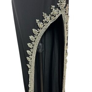 Mac Duggal Gown Low Back High Slit Dress Black Silver Size 8