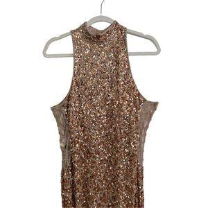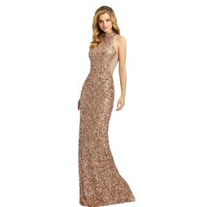 Mac Duggal Gown Mock Neck Beaded Sequin Column Copper Women's Size 2