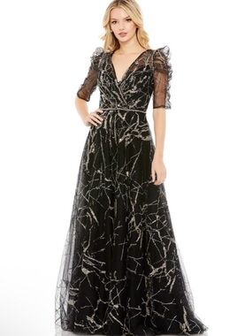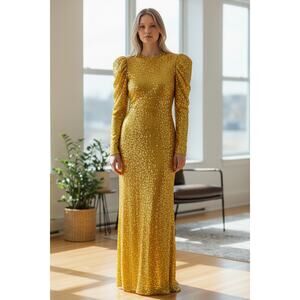Mac Duggal Green Long Sleeve Maxi Gown Size 4