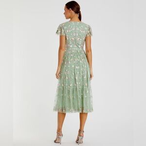 Mac Duggal Green Multicolor Embroidered V Neck Cap Sleeve Midi Dress 35104