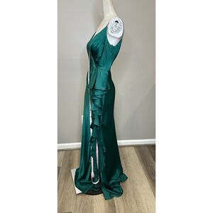 Mac Duggal Green Satin Ruffled Asymmetrical Gown US 4 $338