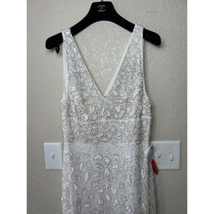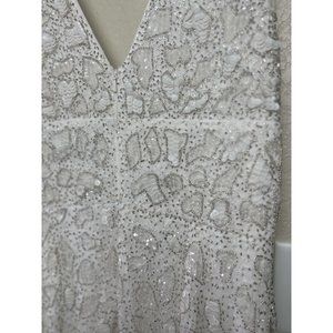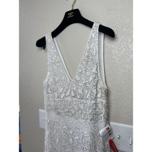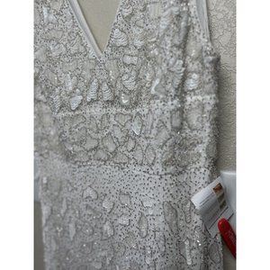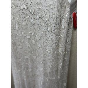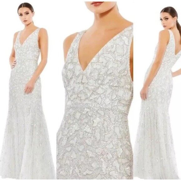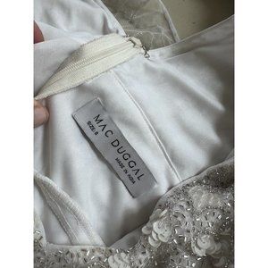 This stunning gown by Mac Duggal boasts hand embellished beading and sequins in a beautiful white color that is perfect for weddings, parties, or formal events. The dress features a sleeveless design with a V-neckline and a zip closure. It has an empire waist and a fit and flare style that accentuates your curves and creates a flattering silhouette. The dress is made of high-quality polyester material and is fully lined.