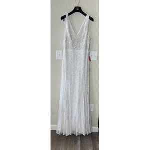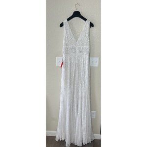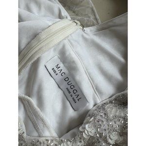 Mac Duggal Hand Embellished Beaded Gown With Train White 10814 Size 8 New