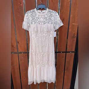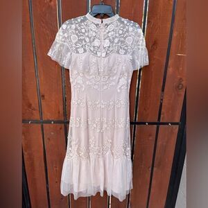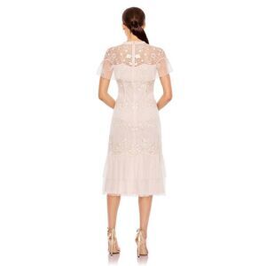 Mac Duggal High Neck Mesh Tiered embroidered dress size 8 Blush