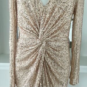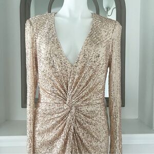 Mac Duggal IEENA Sequined High Low Dress, Rose Gold, NWT, Size 12