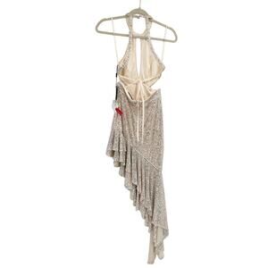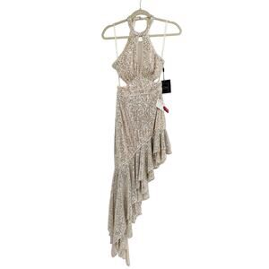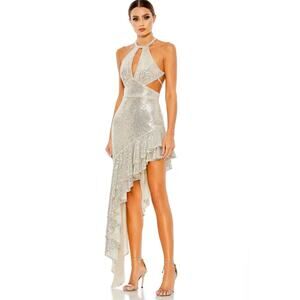 Mac Duggal Ieena 11274 Sequined Silver Halter Cut Out Ruffle Dress 2 NWT