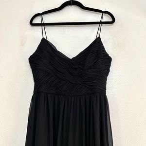 Flowy white chiffon jumpsuit detailed with a cross ruched top and tie belt.