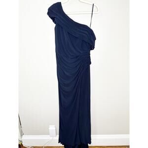 Mac Duggal Ieena 26517 Dress Foldover Off-The-Shoulder Slit Gown Navy Size 14