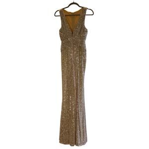 Mac Duggal Ieena 26598 Sequin Sheath Gown Champagne Nude Beige Size 2 NWT