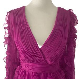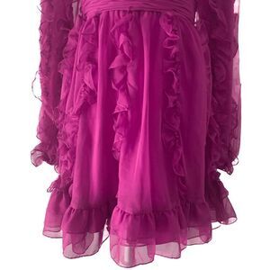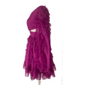 Mac Duggal Ieena Long Sleeve Chiffon Cut Out Ruffle Mini Dress Size 2 Magenta