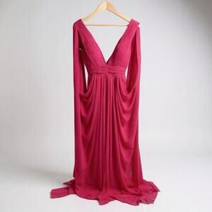 Mac Duggal Ieena Maxi Evening Gown Dress Sz 4 Lowcut Hot Pink Ethereal Goddess