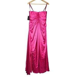 Mac Duggal Ieena Strapless Ruche Satin Classic Gown Hi-Slit Pink Women 12 NWT