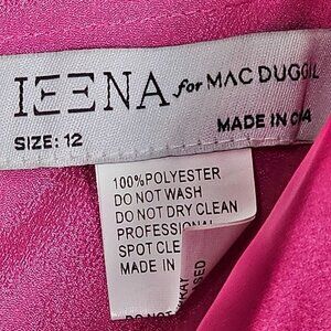 Elevate your style with the Mac Duggal Ruched Satin Classic Prom Gown, a brand-new, size 12 dress from Ieena. This pink, 100% polyester gown features a slit and is perfect for prom night.