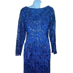 Mac Duggal LONG SLEEVE RUCHED SEQUINED V-NECK GOWN in Midnight Blue NWOT Size 6