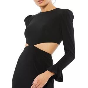 Mac Duggal Puff Sleeve Leena Cut Out Gown in Black Jersey Minimalist Elegant Column 6