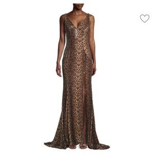 Mac Duggal Leopard Print Sequin Gown