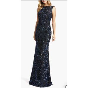 Mac Duggal Long Formal Sequin Drape Back Gown Dress 10 Midnight Blue NWT