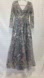 Mac Duggal long sleeve applique gown in Grey Multi. Beautiful ornate V-neck gown with unlined bodice and sleeves. Bust cups. Intircate embellished tull fabric. Mac Duggal 20214. Please see pictures for more details and measurements.