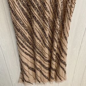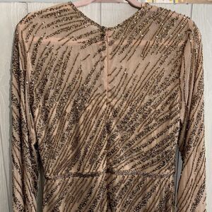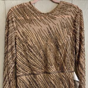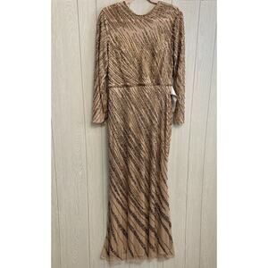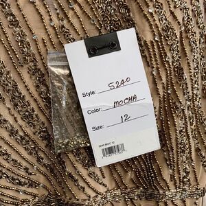 Mac Duggal Long Sleeve Beaded Column Gown Size 12 Mocha 5240 NWT