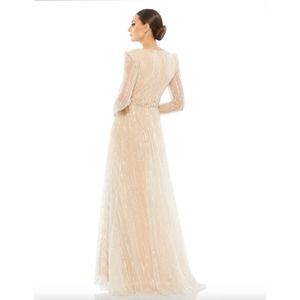 Mac Duggal Long Sleeve Gown With Silver Sequins In Champagne 67859 Size 14 New