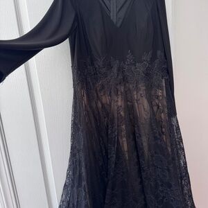 Mac Duggal Long Sleeve Jersey & Lace Cocktail Dress Fabulouss Size 12