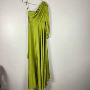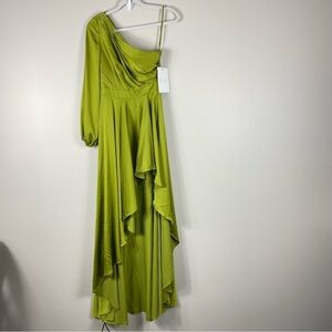 Mac Duggal Long Sleeve One Shoulder Satin High Low A-line Gown Womens 2 Green