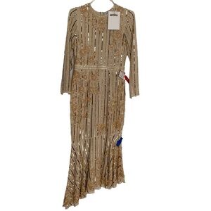 Mac Duggal | Long Sleeve Sequin Tea Dress Asymmetrical Hem Gold 93627 Size 4 NEW