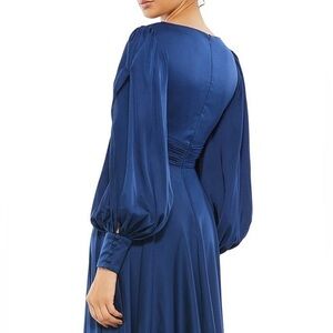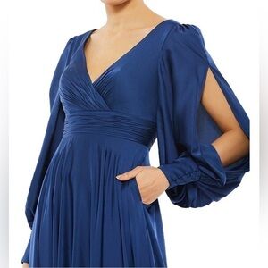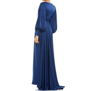 Mac Duggal Long Split Bishop Sleeve Surplice V-Neck A-Line Gown in Blue size 6