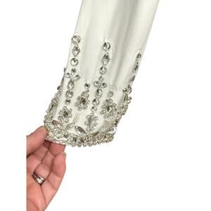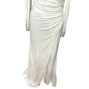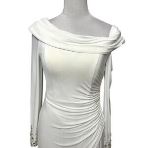 Mac Duggal Maxi Dress Off Shoulder Jewel-Embellished Cuff White Women's 6 NWOT