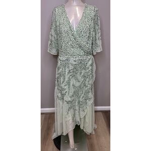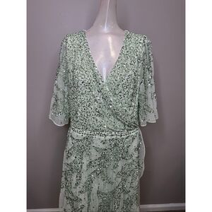 Mac Duggal Metallic High-Low Gown in Sage US 14 $498