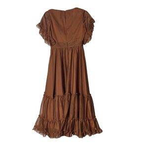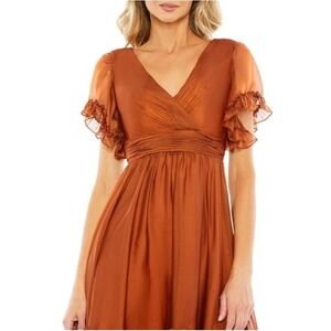 Mac Duggal Midi Tea Length Ruffled Dress Rust Cap Sleeve V-Neck 68018 NWT Size 2