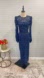 Mac Duggal Midnight Blue Long Sleeves Embellished Beaded Maxi Gown - Reemoly