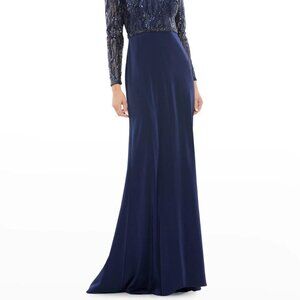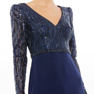 Mac Duggal Midnight Blue V-Neck Long Sleeve Empire Waist Gown