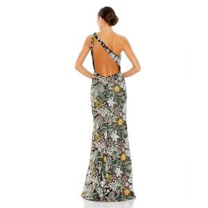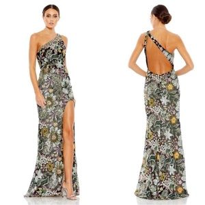 Mac Duggal Multicolor Floral One-Shoulder Gown