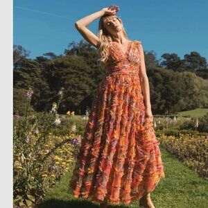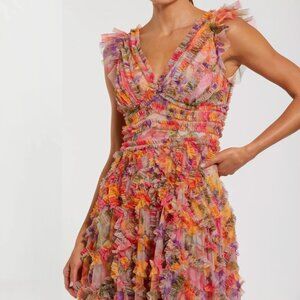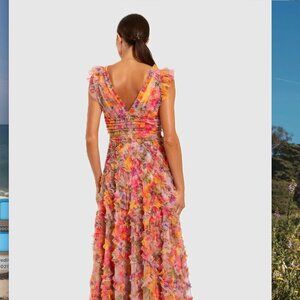 Mac Duggal NEW Multicolor Floral V-neck Sleeveless Ruffle Maxi Dress $598 Size 4