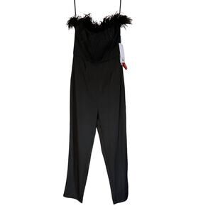 Mac Duggal NEW Size 12 Style 68146 Black Feather Neck Sleeveless Strapless Jumpsuit NWT