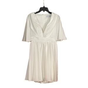 Mac Duggal NEW Size 2 White Satin Flowy SS Flutter Sleeve Mini Dress 26605