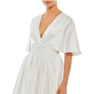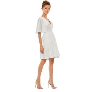 Mac Duggal NEW Size 2 White Satin Flowy Short Sleeve Flutter Sleeve Mini Dress NWT